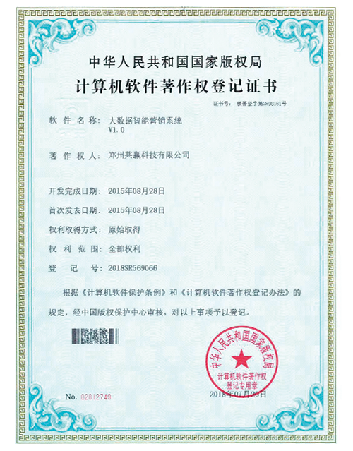 計(jì)算機(jī)軟件著作權(quán)登記證書